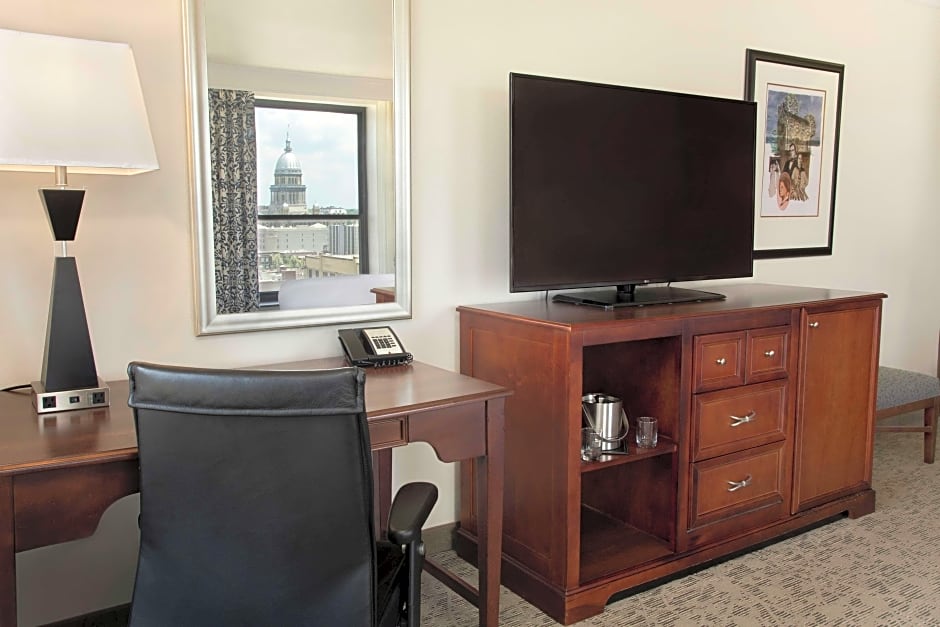A 42-inch flat-screen satellite cable TV and a sofa bed are included in the separate living area of this suite, along with a hairdryer and coffeemaker.